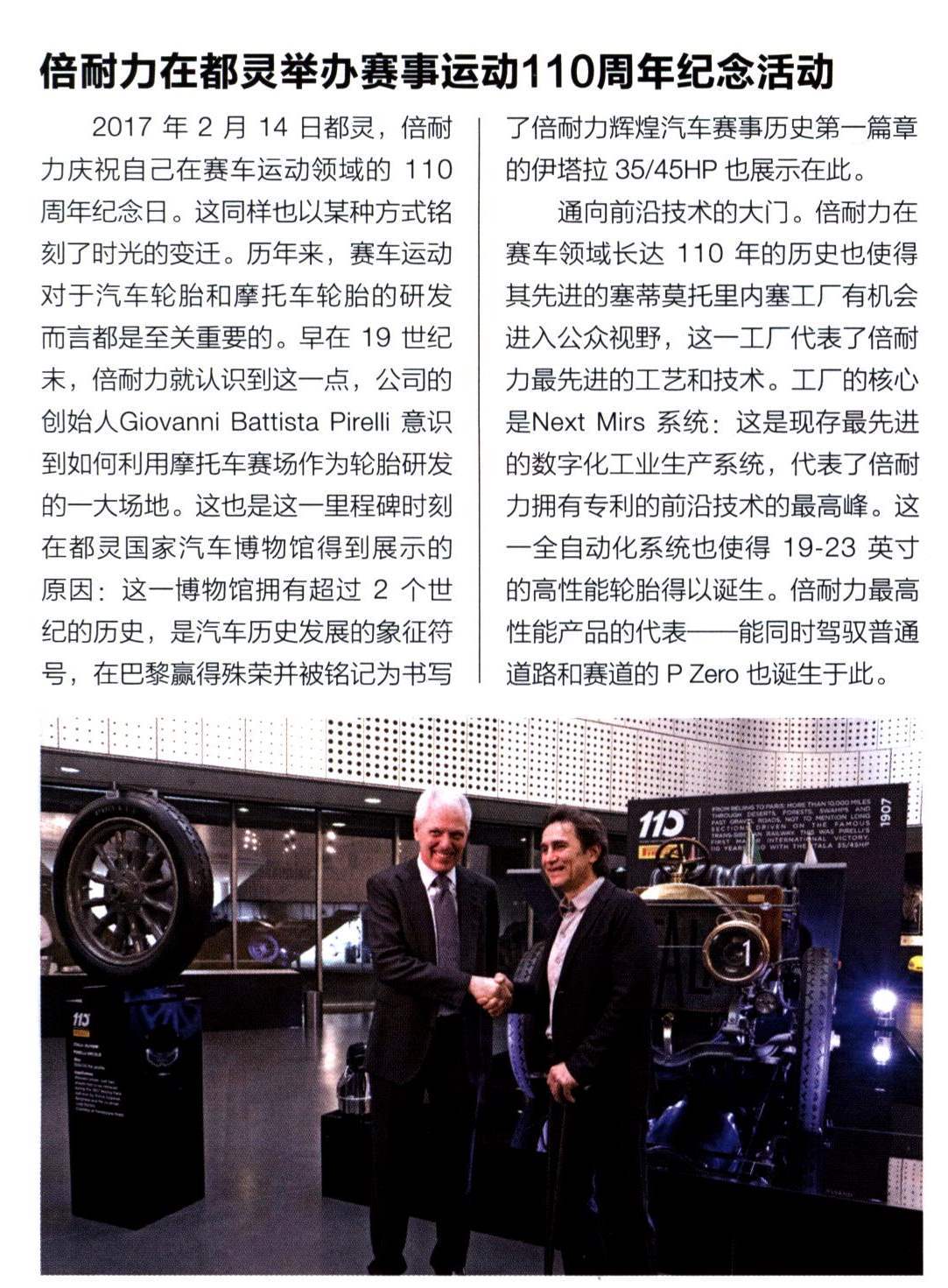 倍耐力在都灵举办赛事运动110周年纪念活动