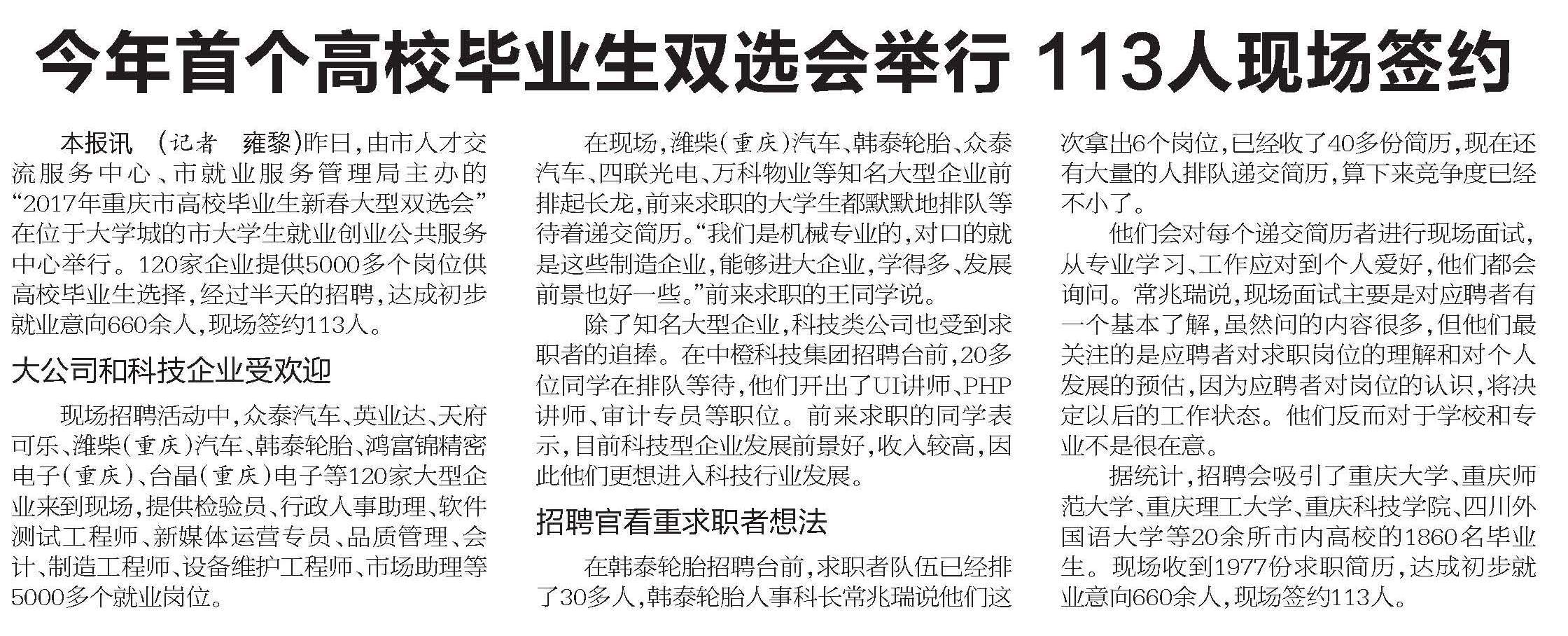 今年首个高校毕业生双选会举行113人现场签约