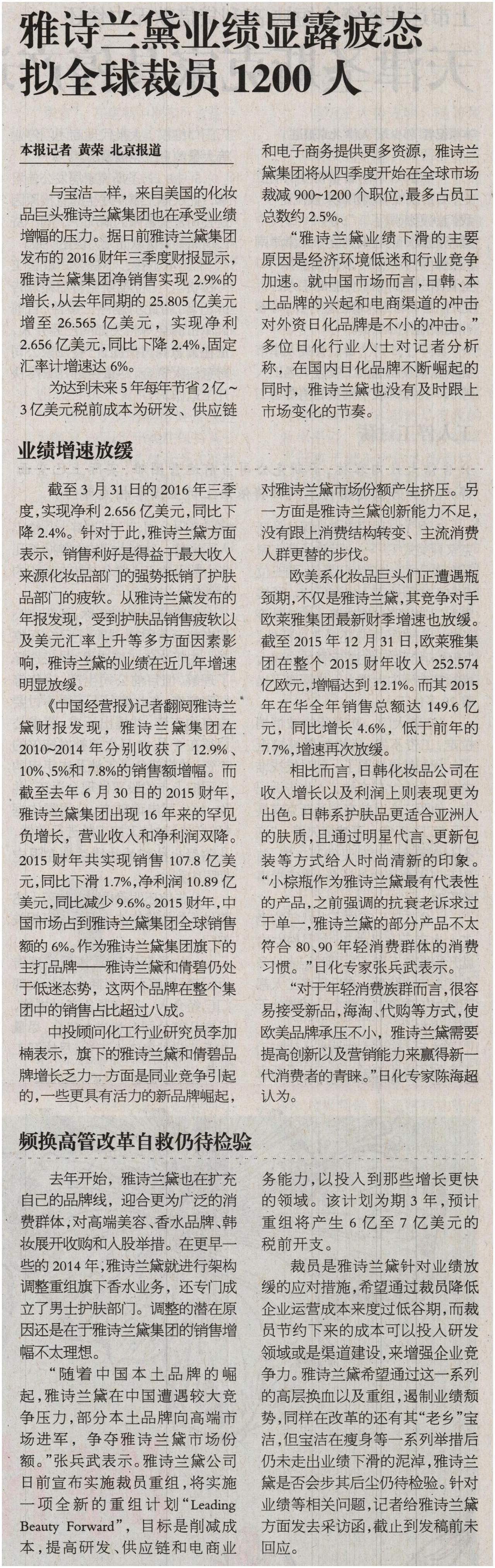 Comments on 雅诗兰黛业绩显露疲态 拟全球裁员1200人