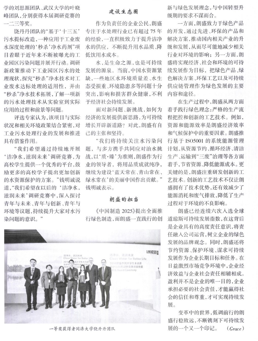 朗盛“洁净水,滋润未来”2