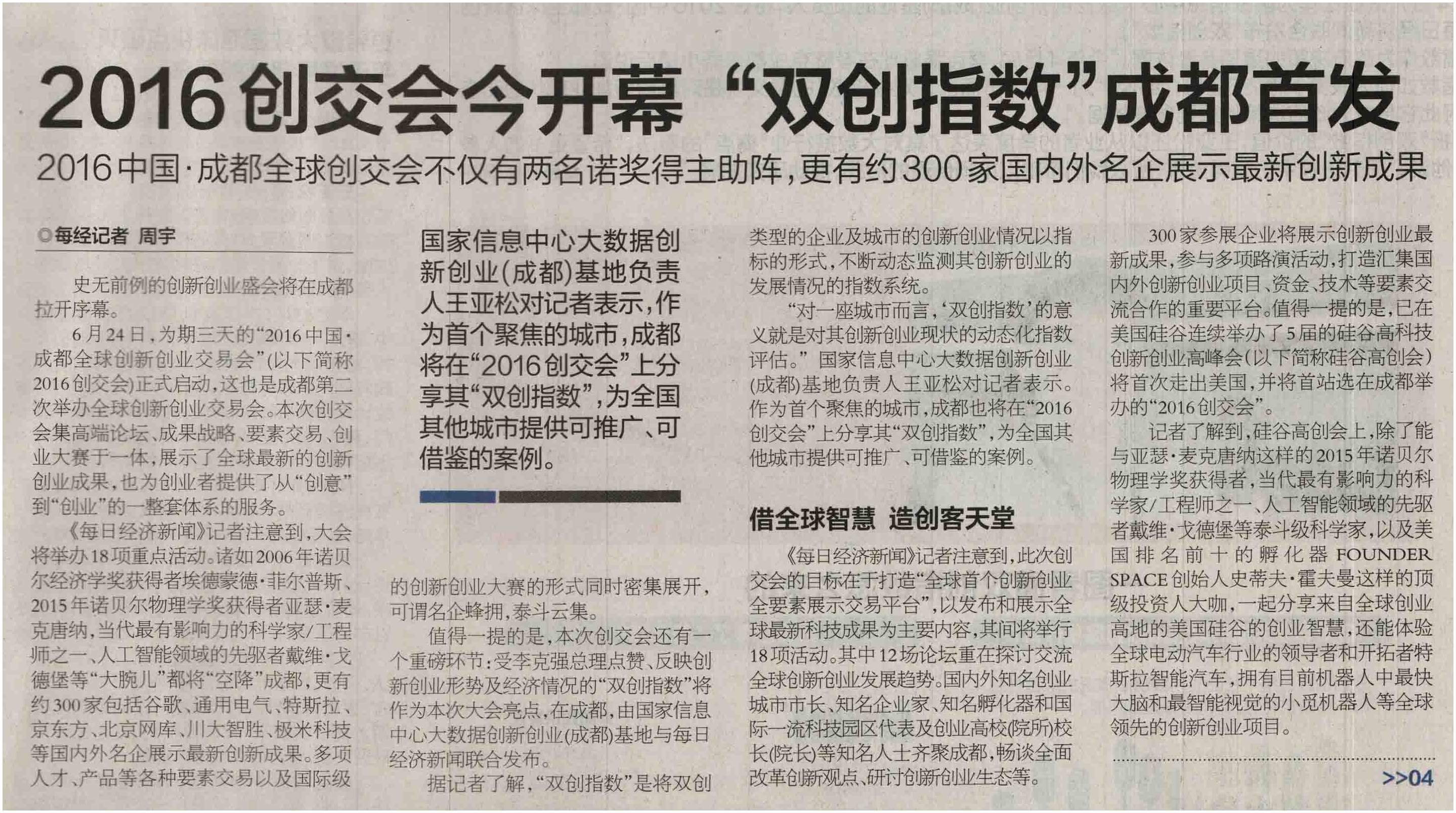 Comments on 2016创交会今开幕“双创指数”成都首发