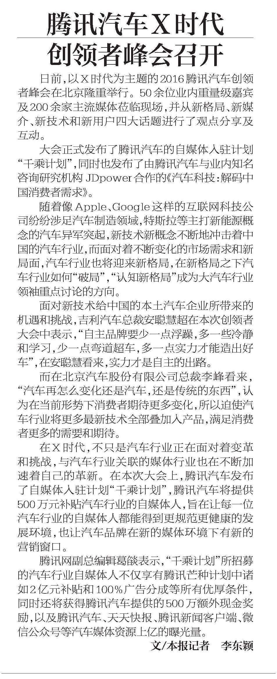 20160511_Beijing Youth Daily_腾讯汽车X时代 创领者峰会召开.jpg