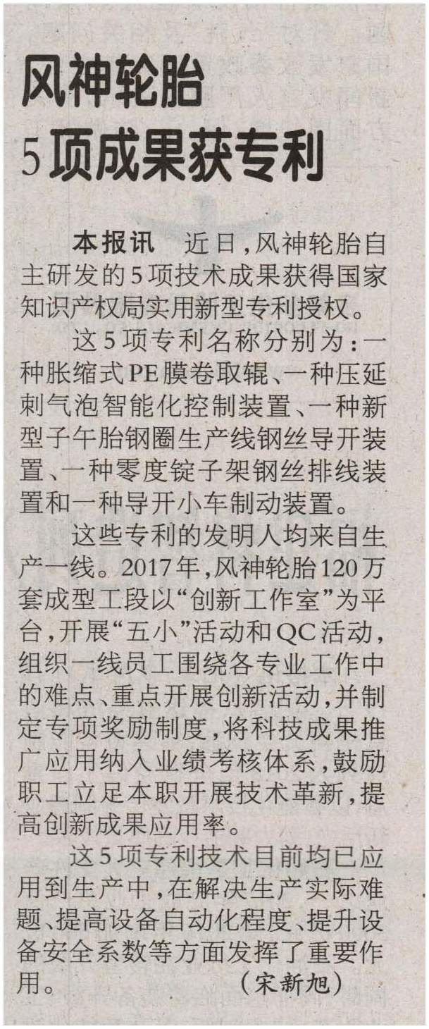 Comments on 风神轮胎5项成果获专利