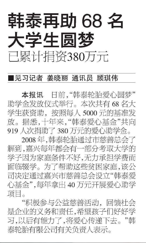 Comments on 韩泰再助68名大学生圆梦