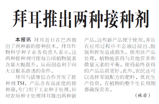 Comments on Bayer presents 2 new inoculants for seed treatment in Brazil