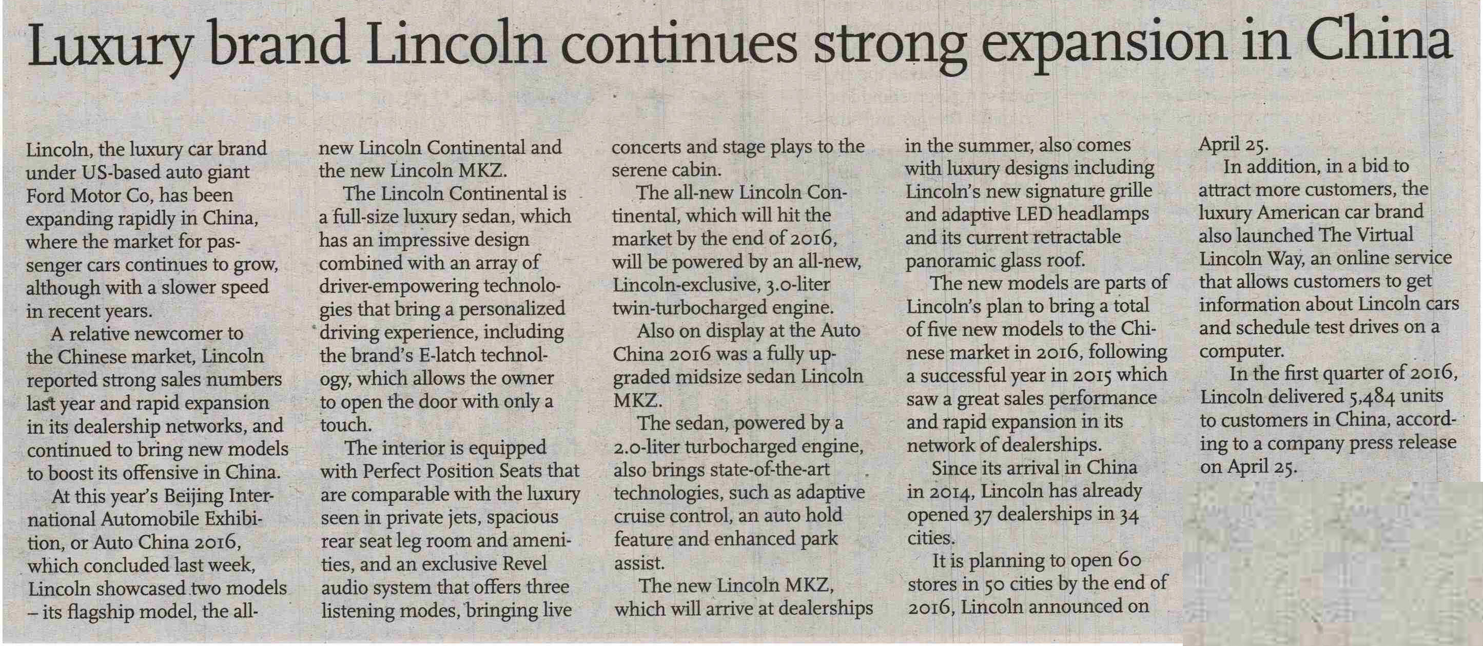 Comments on Luxury brand Lincoln continues strong expansion in China