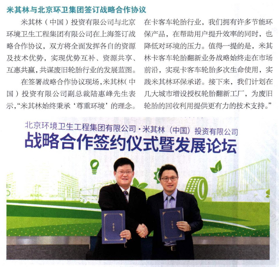 Michelin sign the corperation with Beijing
