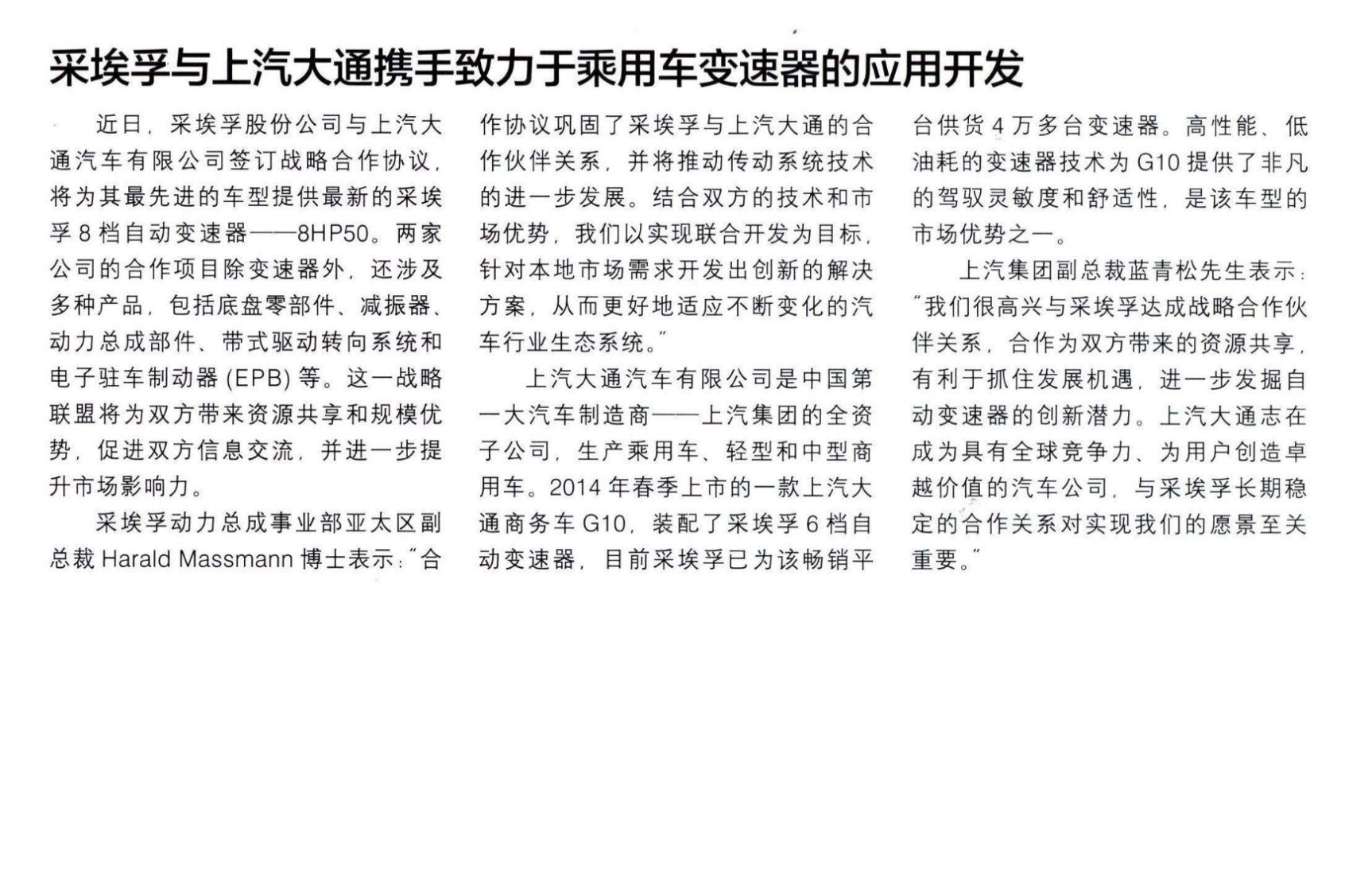 Comments on ZF 与上汽携手