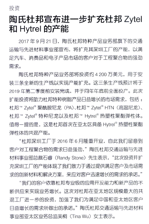 陶氏杜邦宣布进一步扩充杜邦Zytel和Hytrel的产能.png