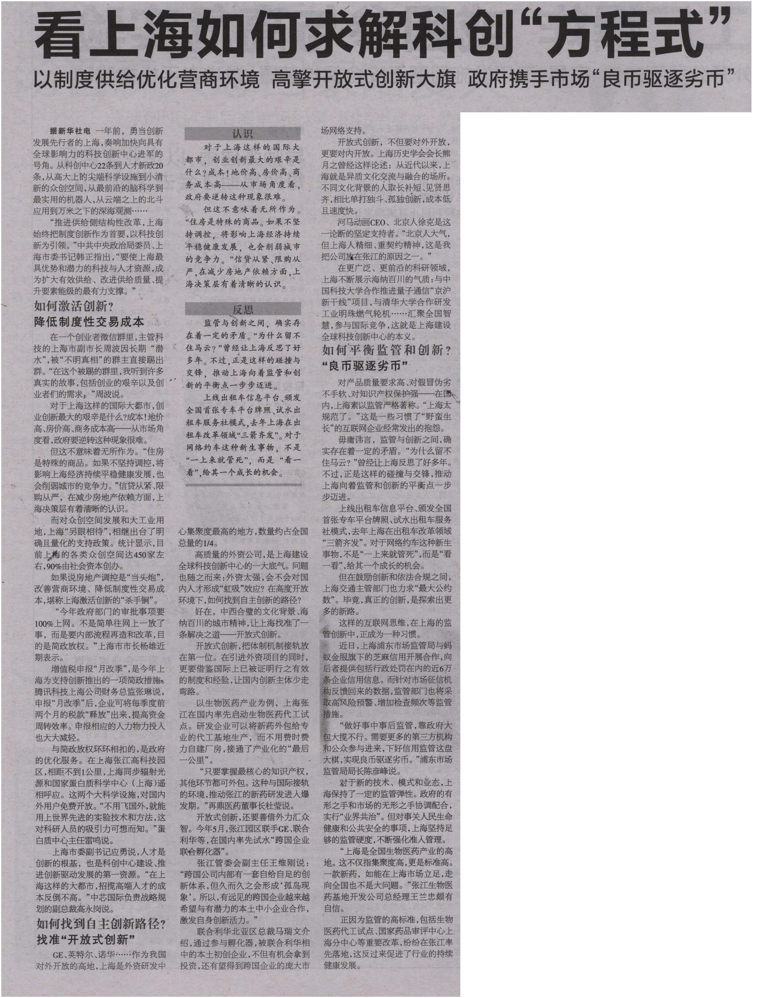 Comments on 看上海如何求解科创“方程式”
