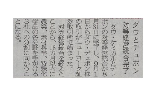 Comments on ダウ−デュポン、対等経営統合が完了