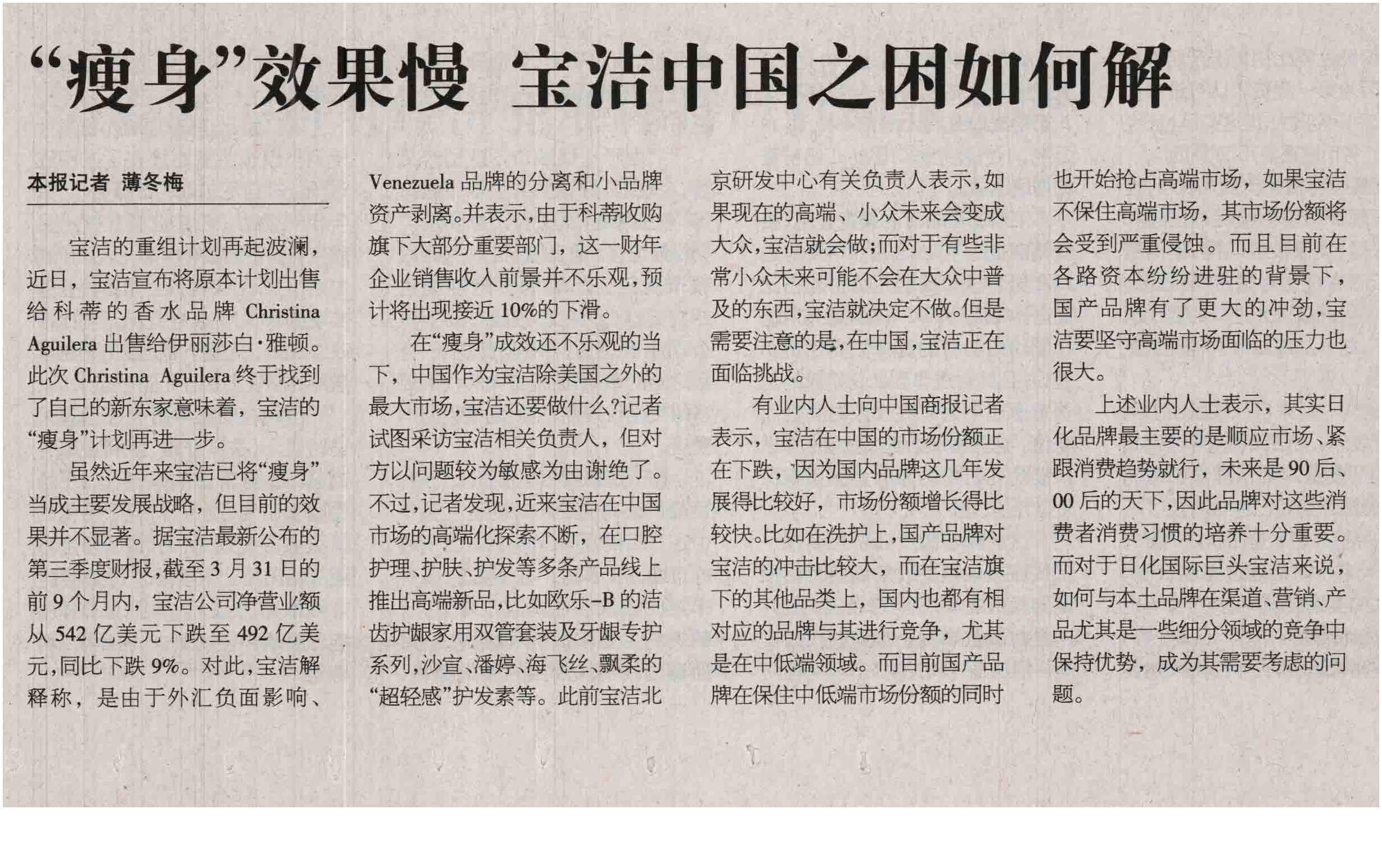 Comments on “瘦身”效果慢宝洁中国之困如何解