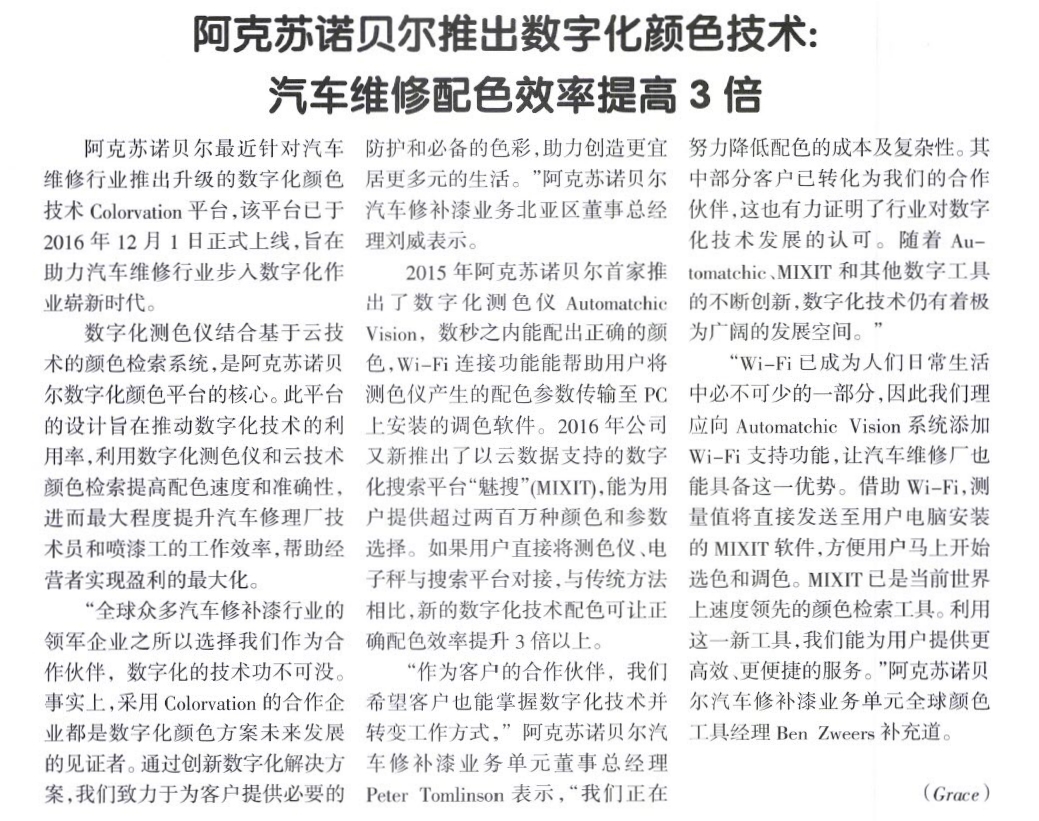Comments on 阿克苏诺贝尔推出数字化颜色技术