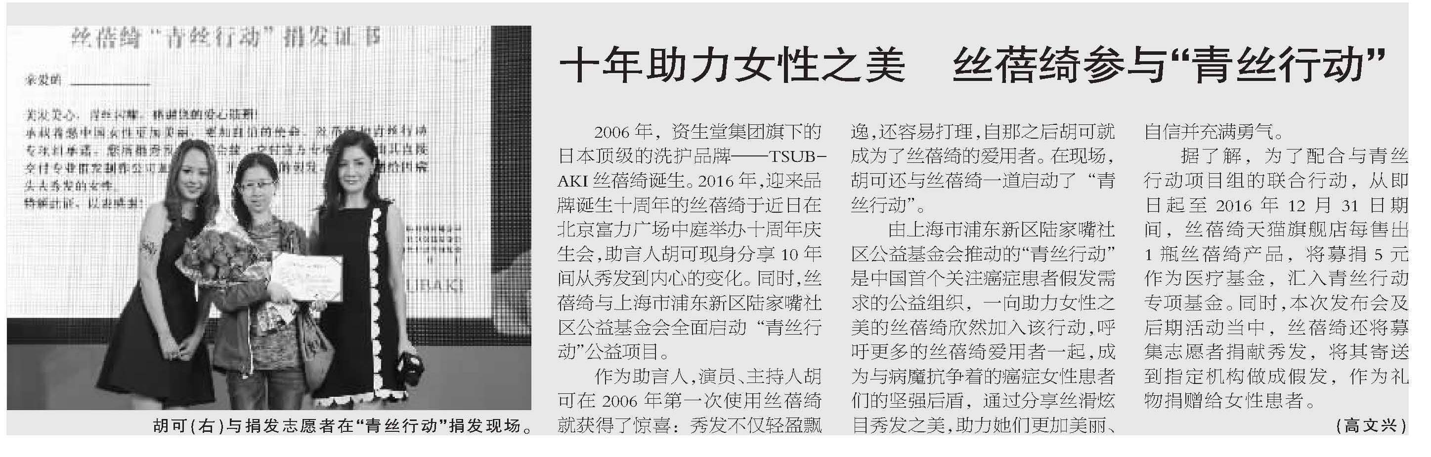 十年助力女性之美 丝蓓绮参与“青丝行动”