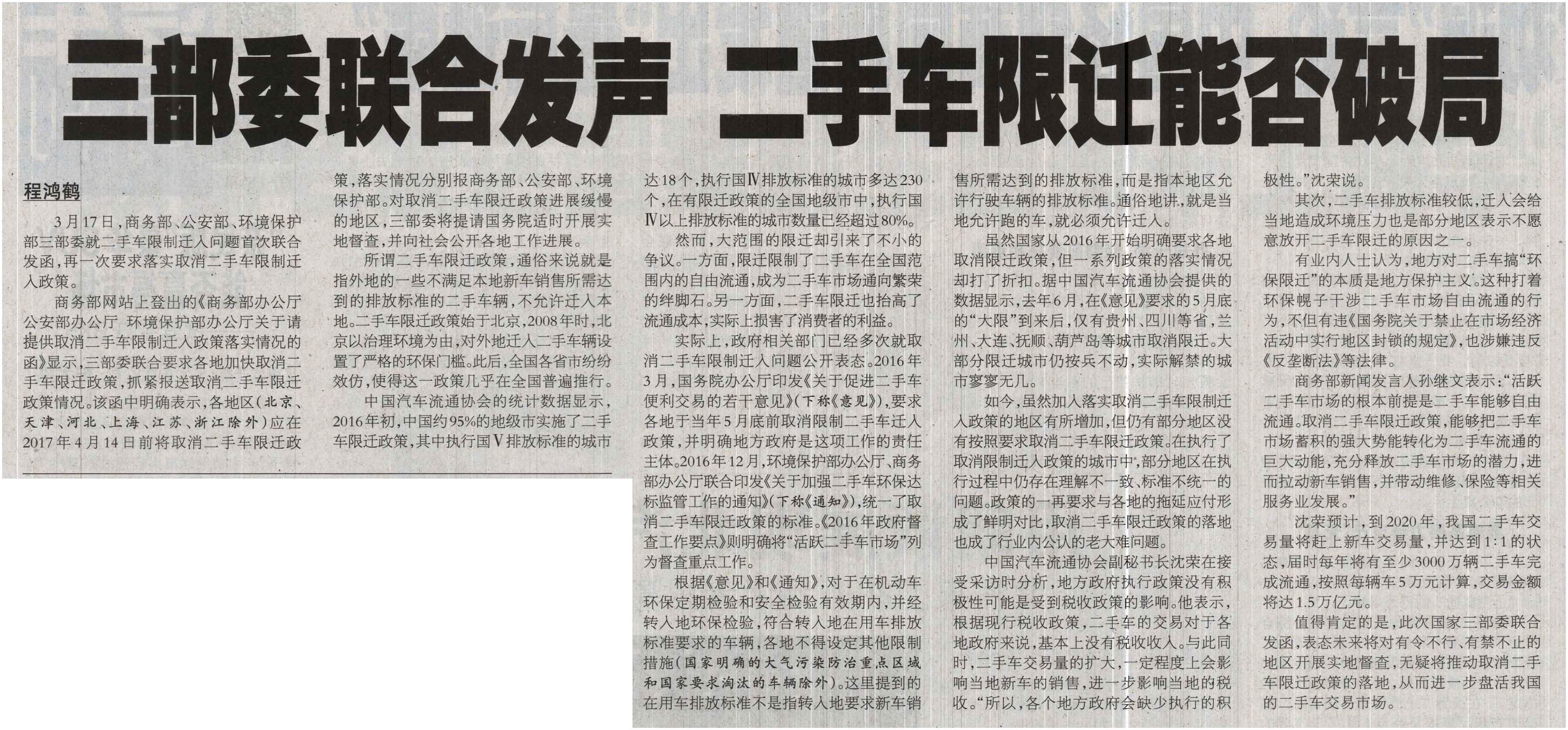 三部委联合发声 二手车限迁能否…