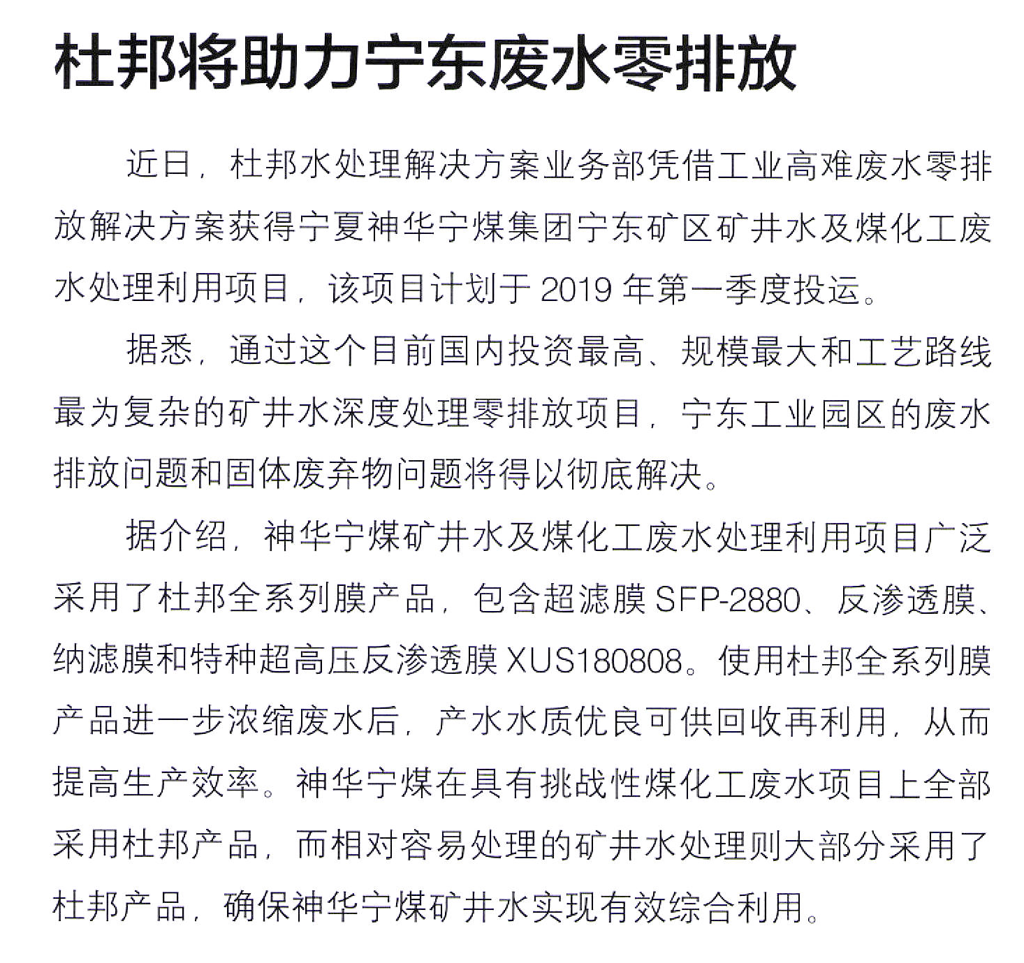 Comments on 杜邦将助力宁东废水零排放