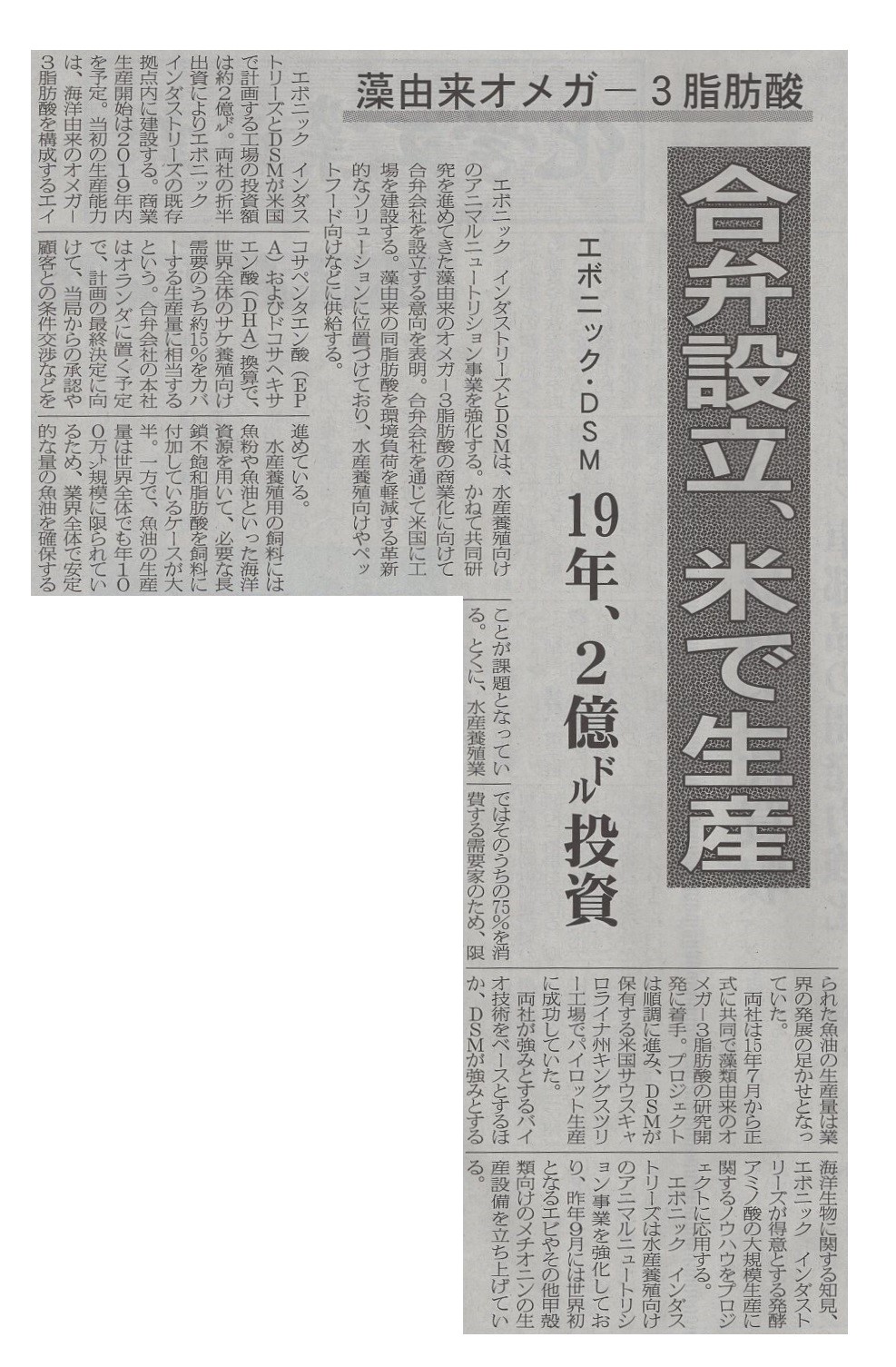 Comments on 合弁設立、米で生産
