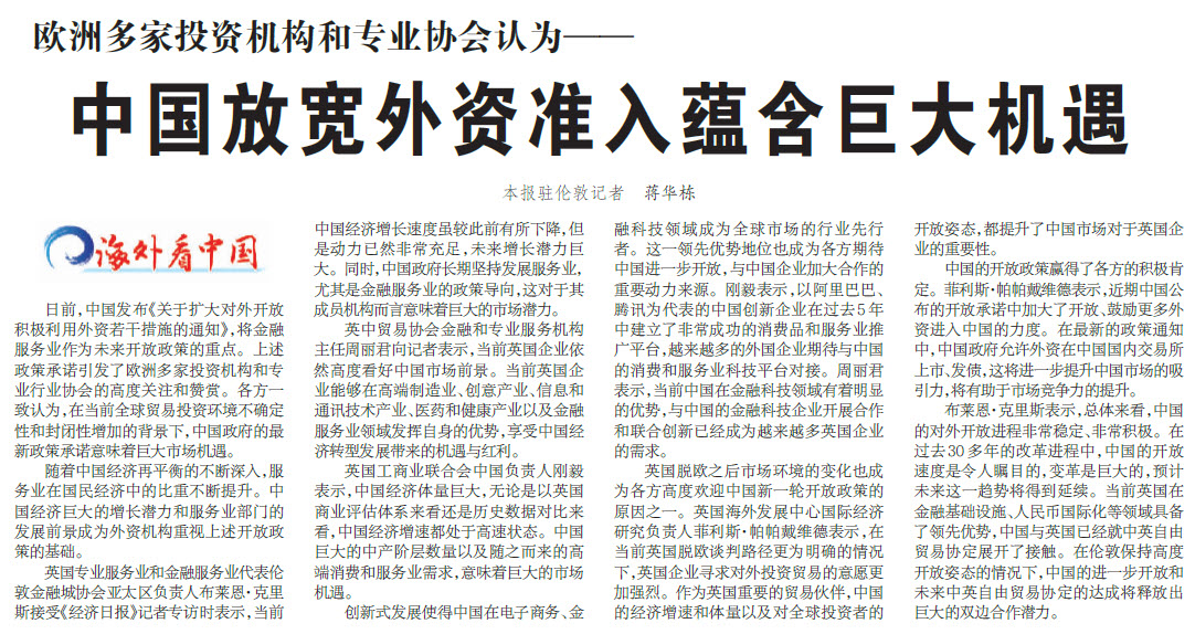 中国放宽外资准入蕴含巨大机遇