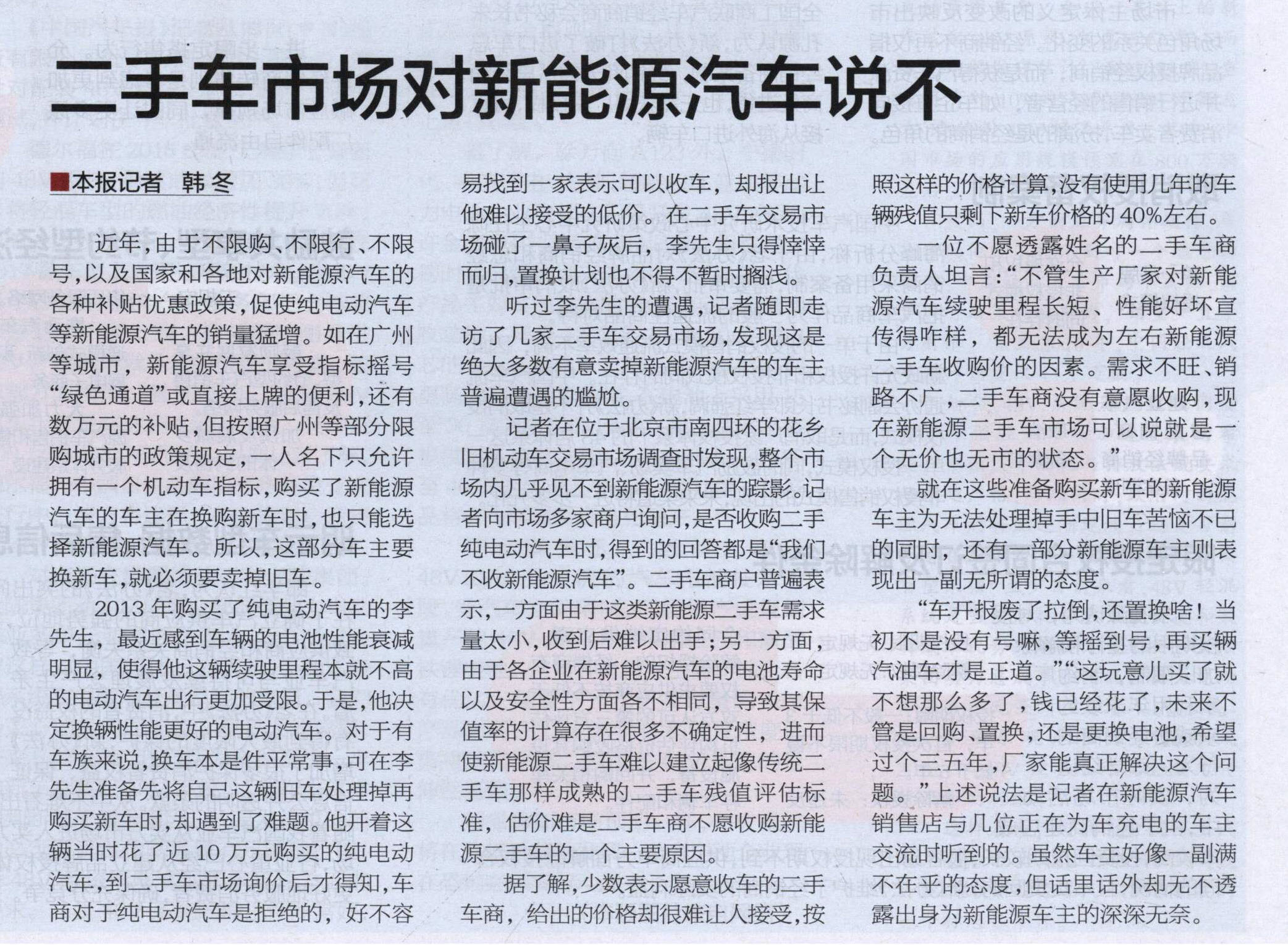 二手车市场对新能源汽车说不