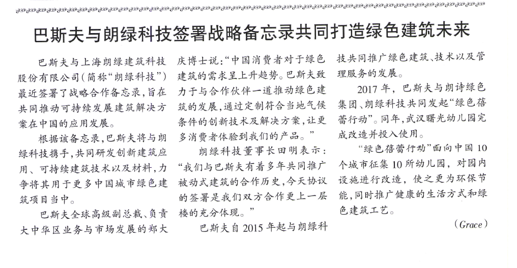 巴斯夫与朗绿科技签署战