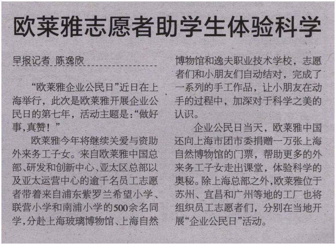 欧莱雅志愿者助学生体验科学
