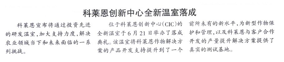 科莱恩创新中心全新温室落成