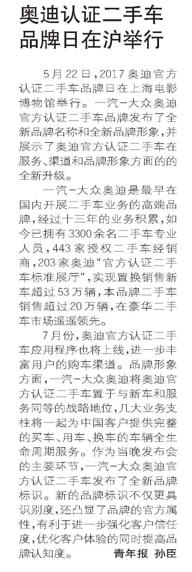 奥迪认证二手车品牌日在沪举行