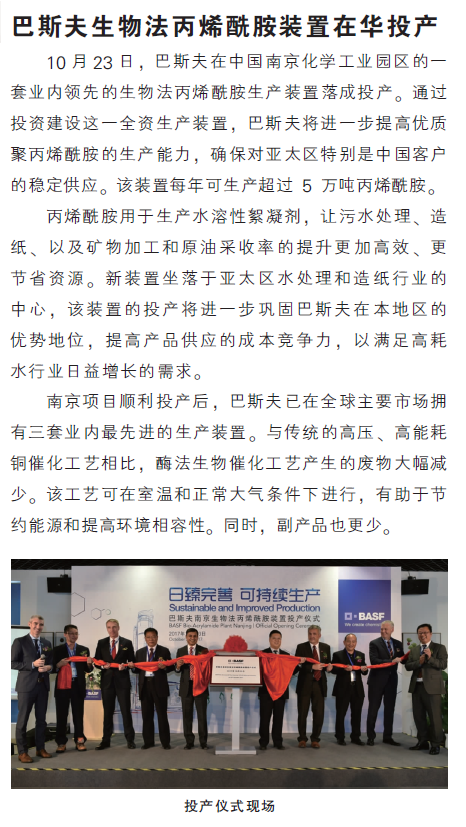 巴斯夫生物法丙烯酰胺装置在华投…