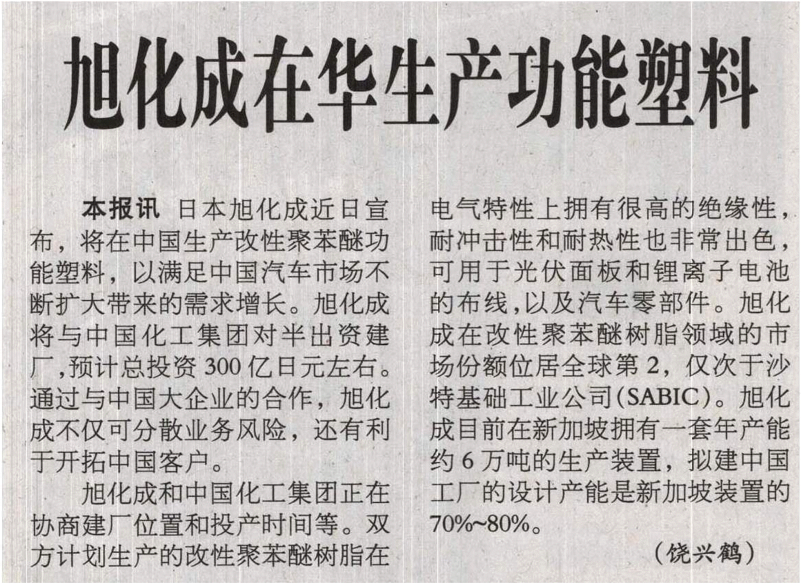Comments on 旭化成在华生产功能塑料