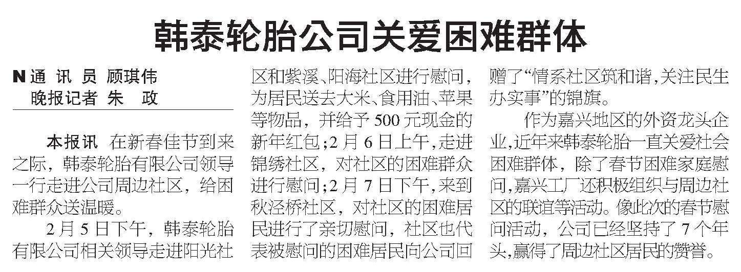 韩泰轮胎公司关爱困难群体