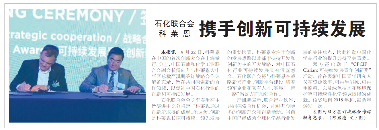 石化联合会与科莱恩携手创新可持…