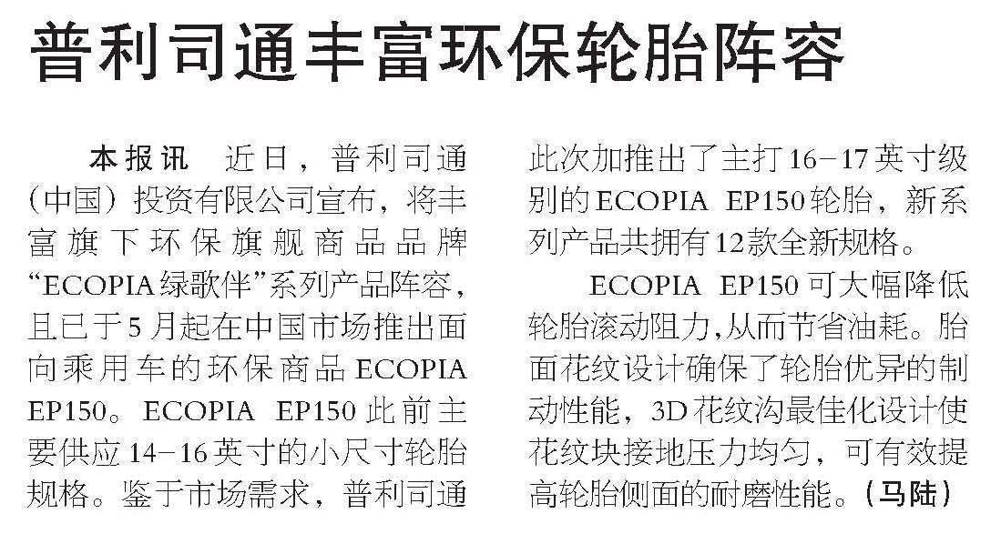Comments on 普利司通丰富环保系列产品加速扩容