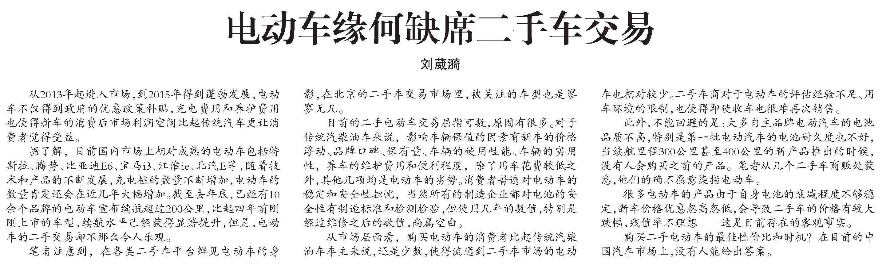 电动车缘何缺席二手车交易