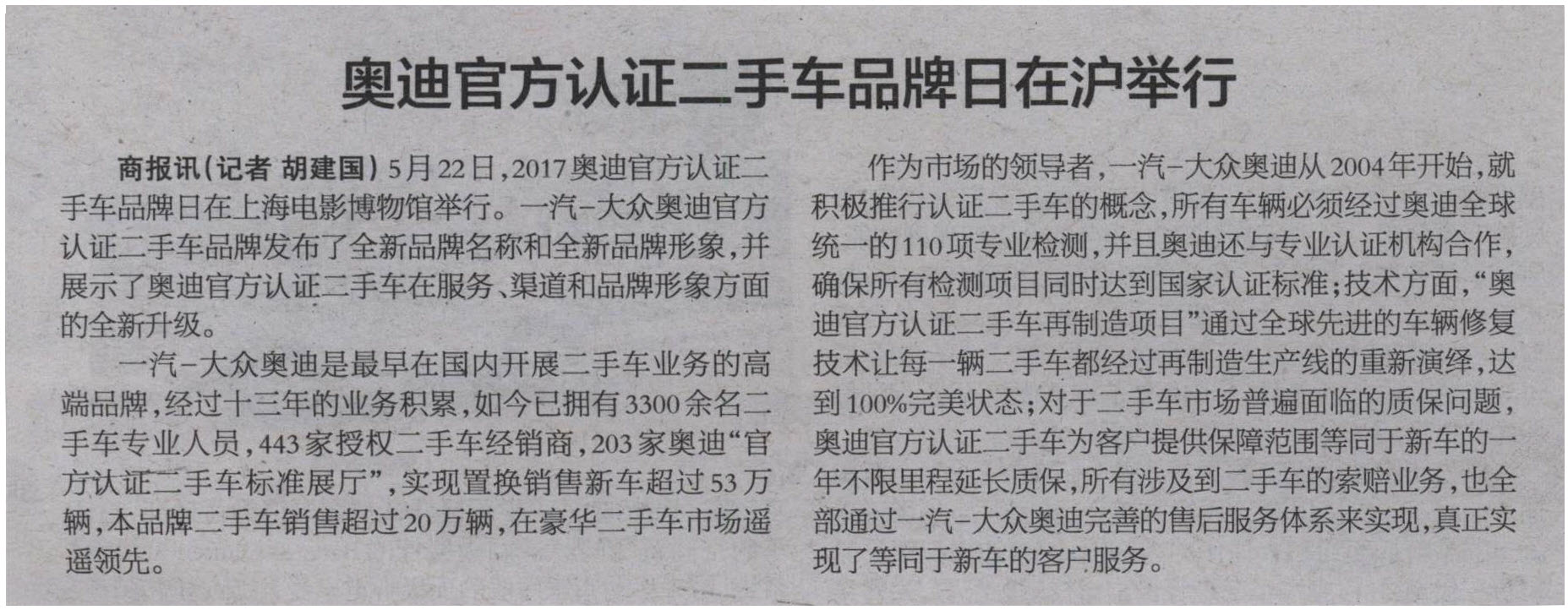 奥迪官方认证二手车品牌日在沪举行