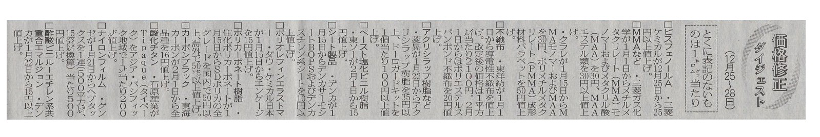 価格修正ダイジェスト