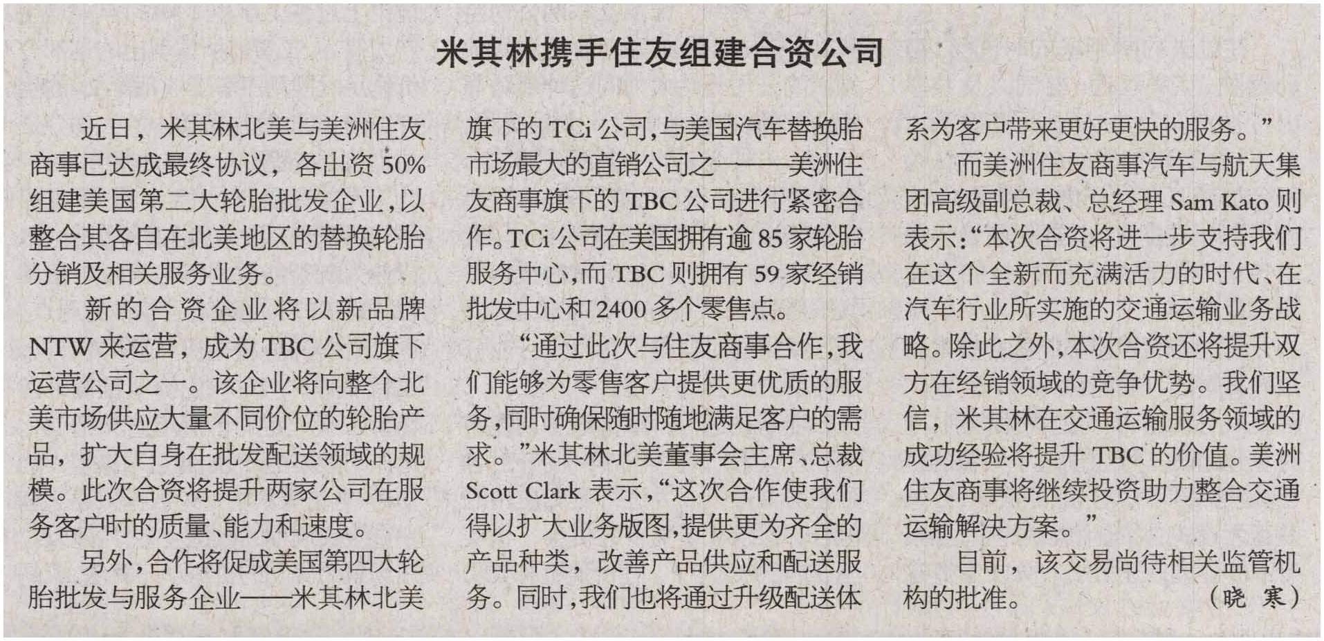 Comments on 米其林携手信友组建合资公司